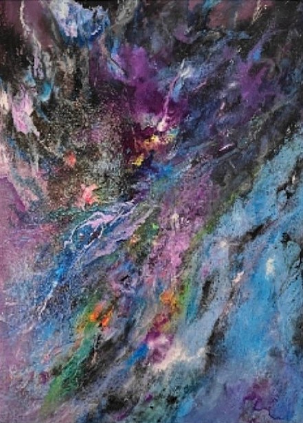 Acrylic paint and acrylic ink painting on wood panel based on our beautiful Cosmos. I’ve named it Into the Unknown.. It measures 17″ x 24″